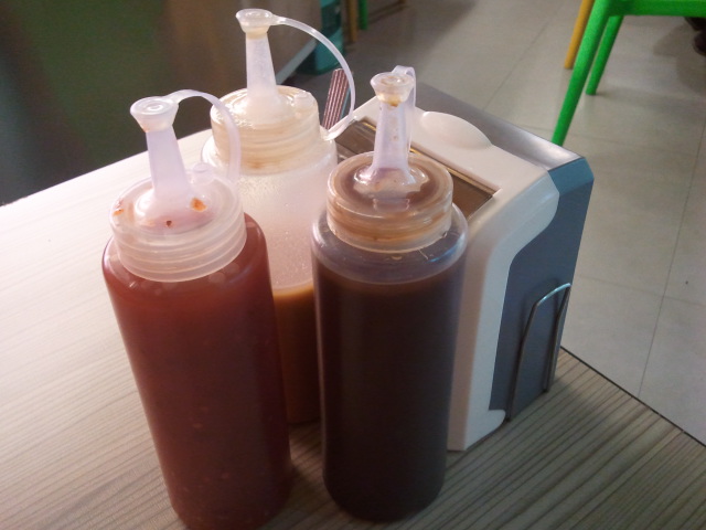 For their condiments, they have Hoissen, Peanut sauce and Chili sauce :)